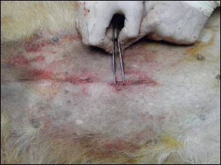 Wie auf den Bildern zu sehen, sind die Zugänge winzig. Es ist nicht zu erwarten, dass unser Patient sich diese kleinen Wunden aufleckt. |