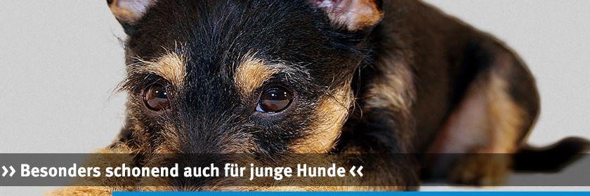 Bei größeren Hunden führen wir die Laparoskopie (minimal invasive Bauchoperation) durch zwei Schnitte von in der Summe 15 mm, bei kleinen Hunden von in der Summe 7,5 mm durch. Das Ergebnis ist eine schnelle Erholung nach der Operation. In den meisten Fällen kann der Hund am darauffolgenden Tag bereits voll belastet werden.