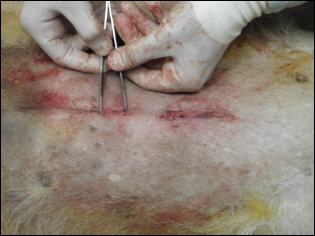 Wie auf den Bildern zu sehen, sind die Zugänge winzig. Es ist nicht zu erwarten, dass unser Patient sich diese kleinen Wunden aufleckt. |