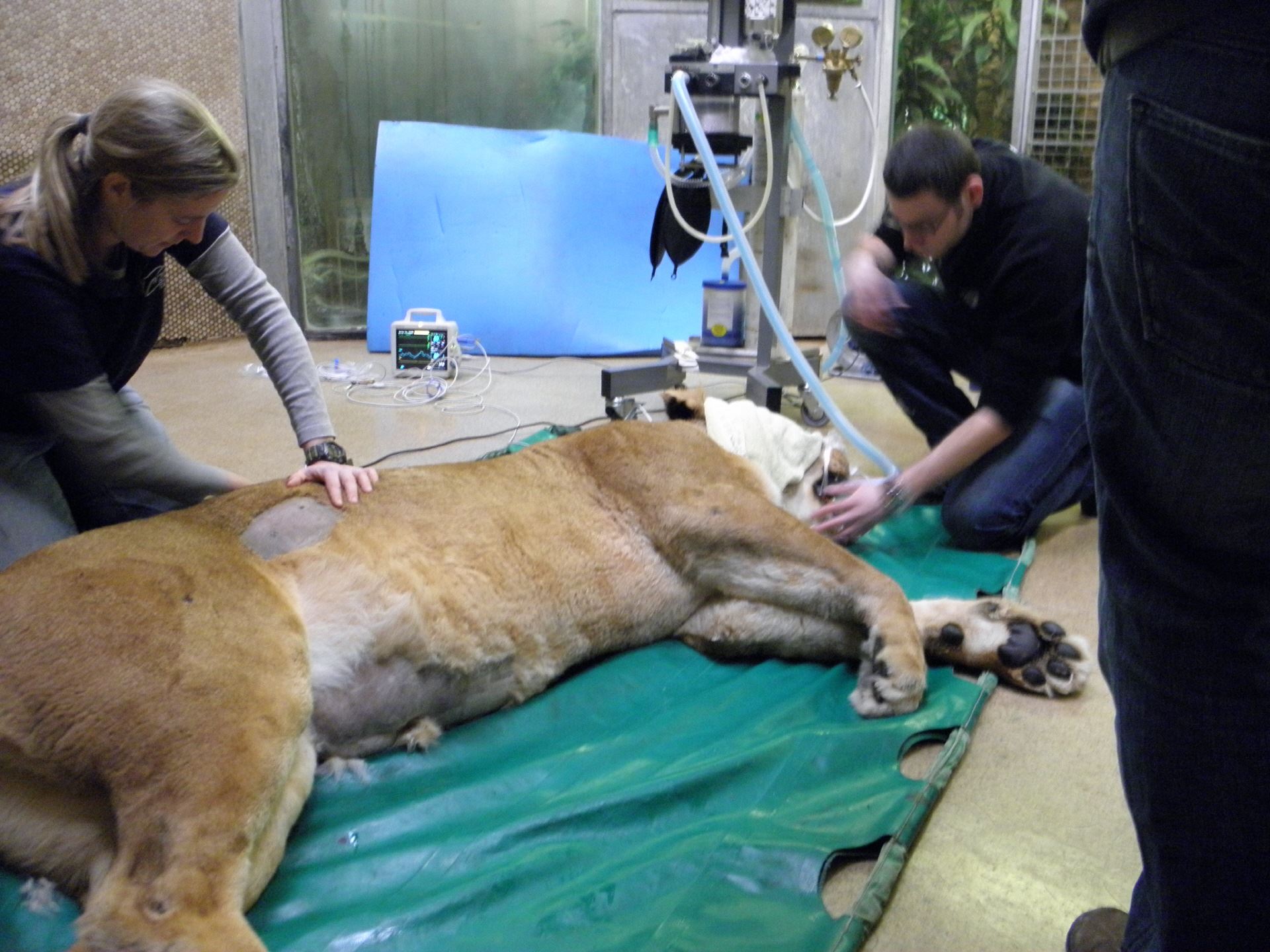 Mittlerweile (2025) haben wir mehrere Löwinnen im Wuppertaler Zoo und in der Zoom Erlebniswelt Gelsenkirchen operiert. Auch ein arktischer Wolf und sogar ein Schneeleopard wurden uns anvertraut. Alle Patienten haben die Operation gut überstanden.