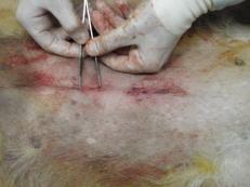 Wie auf den Bildern zu sehen, sind die Zugänge winzig. Es ist nicht zu erwarten, dass unser Patient sich diese kleinen Wunden aufleckt.